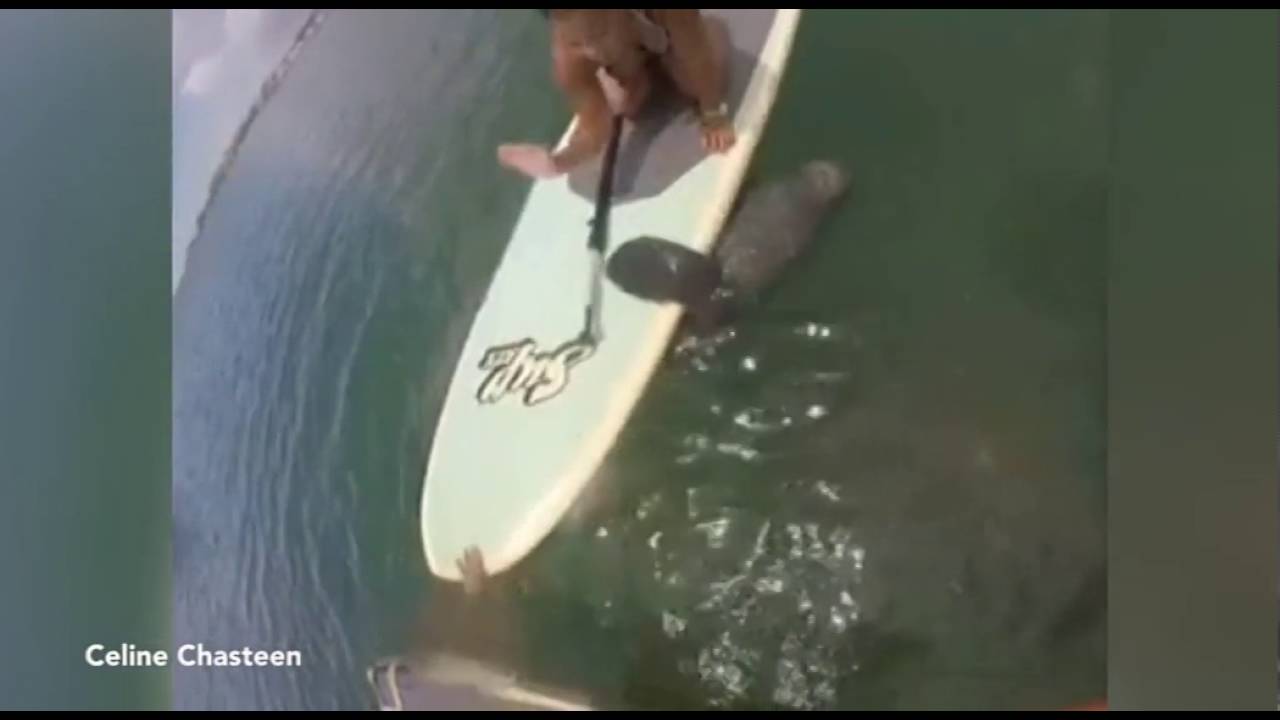I residenti che amano praticare surf nella zona, spesso si imbattono in questo tipo di animali andandoli a volte ad avvicinarli magari solo per al curiopsità di vedere come sono fatti. Per una volta però è accaduto il contrario: è stato proprio un lamantino ad avvicinarsi e addirittura aggrapparsi, come per riposare, alla tavola da surf di Celine Chasteen che insieme alla sua amica ha ripreso l’incontro, trasmesso dalle tv locali e finito poi su YouTube.