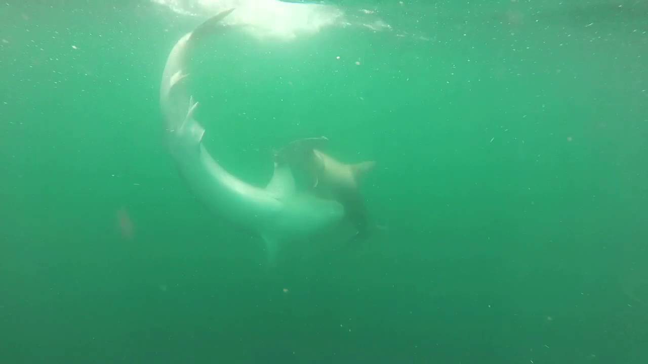 Dalle immagini sembra che lo squalo tigre abbia avuto la meglio sullo squalo martello. ciò è dovuto al fatto che lo squalo tigre ha una stazza di oltre mille libbre che gli ha permesso di azzannare il “cugino” per poi rilasciarlo per andarsene sulla sua strada.