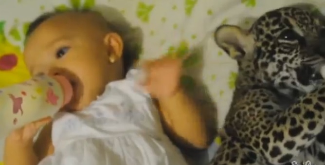 MINAS GERAIS – YOUTUBE Neonata e cucciolo giaguaro bevono biberon insieme Una bimba neonata beve del latte dal biberon. Fin qui niente di strano se non fosse che accanto a lei c’è un cucciolo di giaguaro che sta facendo la stessa cosa. Il video pubblicato sul web divide gli utenti che, commentando le immagini parlano di immagine dolcissima contrapposta a chi dice che si tratta di un rischio eccessivo da far passare ad una bambina cisì piccola.