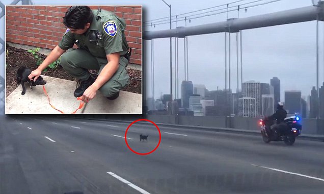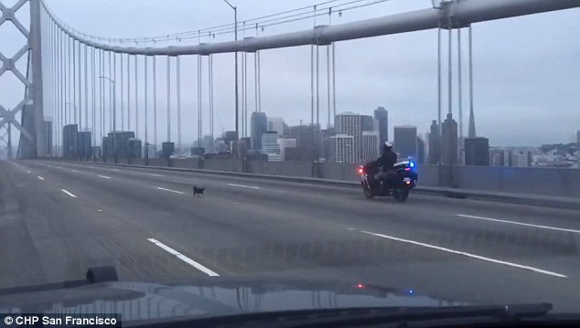 SAN FRANCISCO – Sul San Francisco-Oakland Bay Bridge, un agente della California Highway Patrol si è messo ad inseguire in moto un chihuahua nero rimasto solo in mezzo alla carreggiata del ponte.