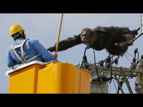 SENDAI – Uno scimpanzè scappato dallo zoo si arrampica sui fili della corrente pensando di essersi messo in salvo. Cha Cha, scimmia di 24 anni evasa dal giardino zoologico Yagiyama di Sendai in Giappone, inizialmente ha vagato per la città poi si è arrampicato su un palo della luce e si è accomodato.