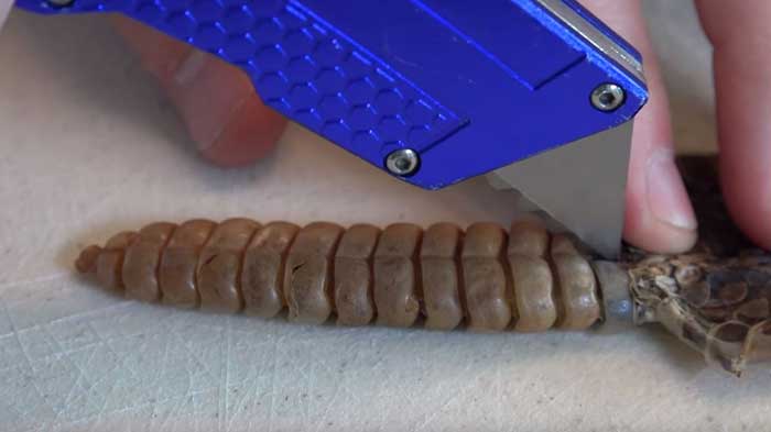 ROMA – Ecco cosa si nasconde nella coda di un serpente a sonagli. A svelarlo è il canale YouTube What’s Inside? in un video postato nei giorni scorsi. La coda viene dissezionata dopo essere stata acquistata su Ebay solo con lo scopo di scoprire cosa si nasconde al suo interno.