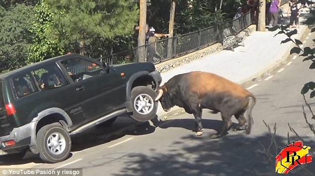 ROMA – Questo è il momento in cui un toro infuriato ha quasi ribaltato una jeep con le corna. Accade in Spagna, nella provincia di Guadalajara. L’animale, racconta il Daily Mail, comincia a correre in strada nervoso Ad un certo punto vede l’auto ferma e con tutta la forza che ha in corpo comincia a prenderla a cornate colpendola dall’interno del parafango di una ruota.