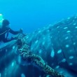CITTA’ DEL MESSICO – YOUTUBE Squalo balena intrappolato in corda da pesca. Un sub riesce a liberare uno squalo balena intrappolato in una corda da pesca. Il video e le foto le pubblica il Daily Mail e mostrano che il sub impiega solo 30 secondi per liberare l’enorme pesce. L’enorme corda rallenta il suo corpo: il sub si trovava là per caso ed ha avvistato la balena affannata decidendo di liberarla.