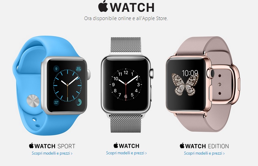 ROMA – Apple Watch è ufficialmente, da oggi 26 giugno 2015, in vendita in Italia. Da qualche minuto il negozio on line, è stato aggiornato per presentare l’offerta dello smartwatch nel nostro paese.