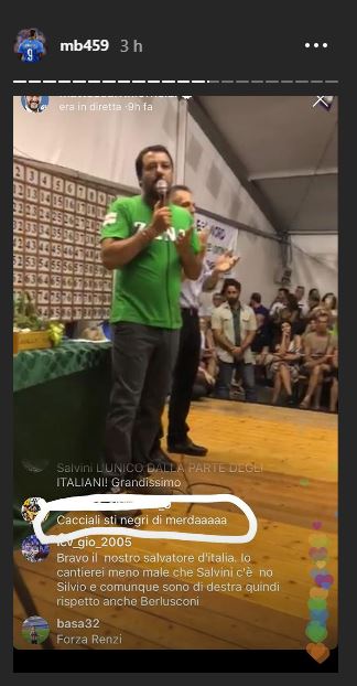 Gli insulti razzisti, tra i commentatori della diretta di Salvini ci sono eccome. Balotelli posta le prove evidenziando quelli su questo tono arrivati mentre era in corso la diretta sui social. Poi posta un’immagine in cui giunge alle conclusioni di quanto letto: “Questo è il motivo per cui roderebbe a molti vedere un NERO (…) Non tutti ma una parte la pensa così come queste persone che scrivono questi commenti? Io non lo voglio credere….davvero no”.