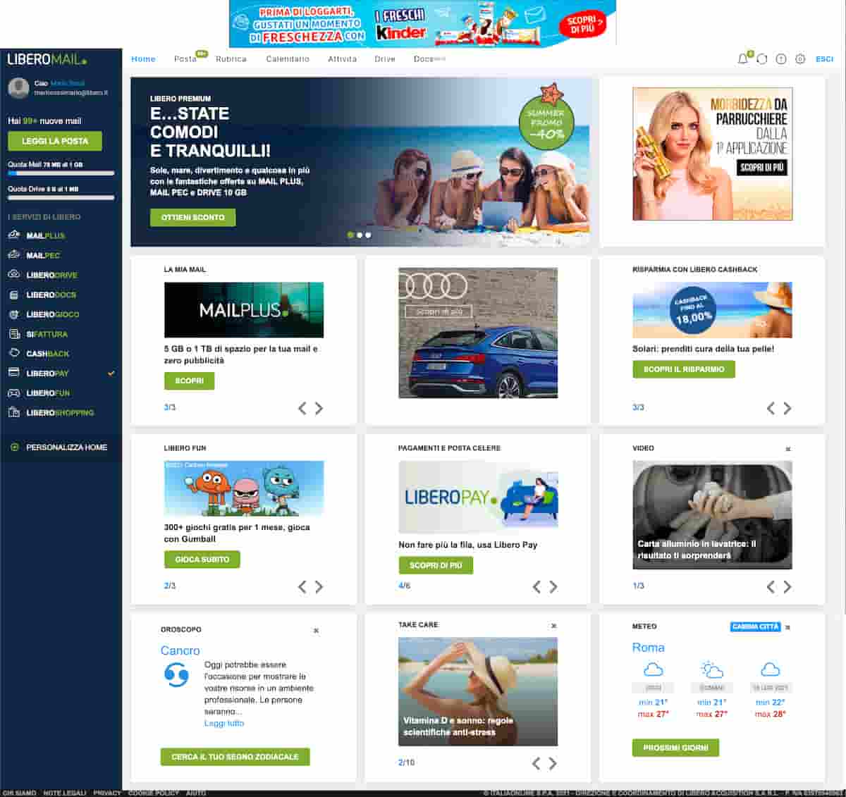 La nuova welcome page della Libero Mail diventa sempre più una “vetrina” per avere a portata di mano servizi di interesse e contenuti editoriali utili e sempre aggiornati.