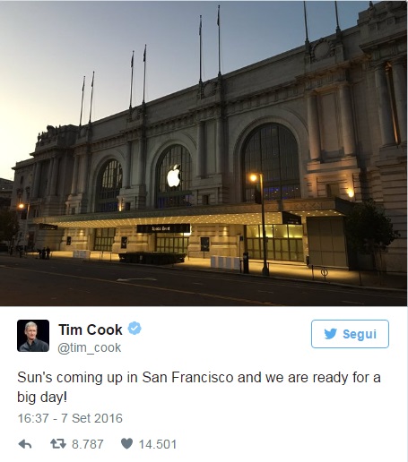 La presentazione dell’iPhone 7 è iniziata alle 19 ora italiana dal Bill Graham Civic Auditorium a San Francisco (qui la diretta Twitter).