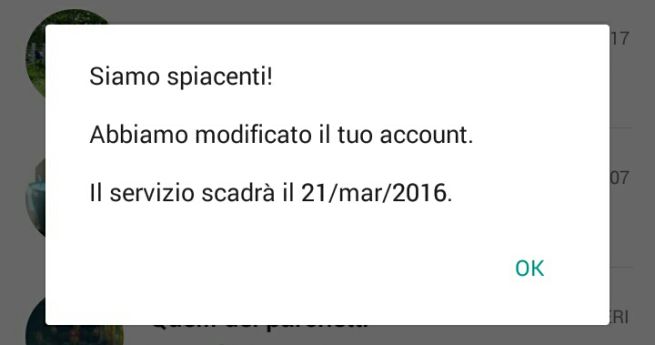 Pochi minuti dopo, però, alcuni si sono visti recapitare un altro messaggio: “Siamo spiacenti, abbiamo modificato il tuo account. Il servizio scadrà il xx/xx/xxxx”. Una notifica che ha spiazzato e fatto infuriare, gli utenti della famosa app.