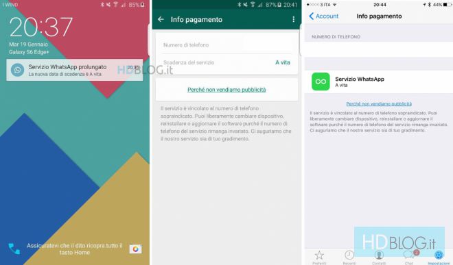 “So over the next several weeks, we’ll remove fees from the different versions of our app and WhatsApp will no longer charge you for our service”. Tradotto significa: “Nel corso delle prossime settimane rimuoveremo le tasse dalle diverse versioni della nostra app e non avrete più addebiti per il nostro servizio”.