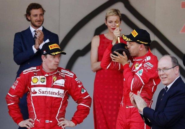 MONTECARLO – Queste foto che seguono le pubblica l’Ansa e spiegano più di mille parole l’amarezza provata da Kimi Raikkonen al termine del Gp di Montecarlo. La faccia di Kimi, malgrado il secondo posto è seria e piena di amarezza. Il finlandese della Ferrari scoppiava di rabbia dato che la sua vittoria è stata sfilata ai box dal compagno di squadra, per ordine di scuderia.