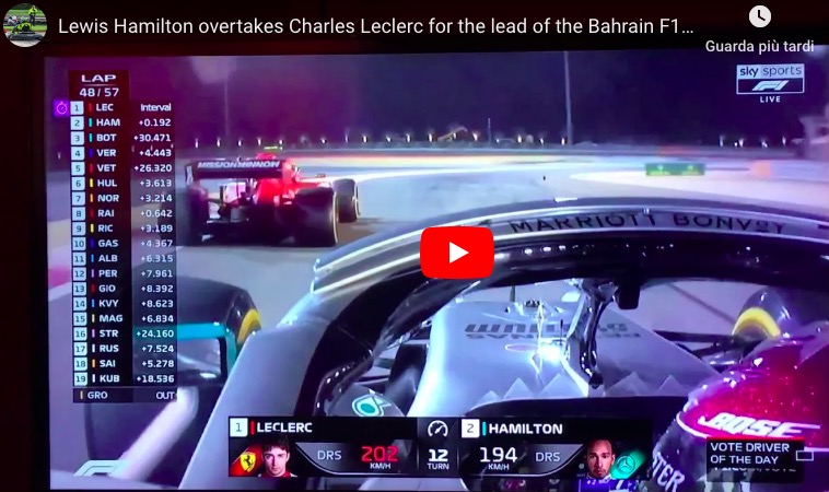 Problemi al motore per Leclerc, Hamilton lo supera al 48° giro. VIDEO