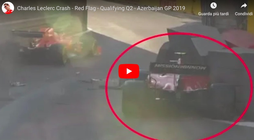 Il video da YouTube con il terribile incidente di Charles Leclerc durante il gran premio dell’ Azerbaijan di Formula 1. La sua Ferrari รจ andata in frantumi dopo aver sbattuto contro il muro di bordo pista.ย