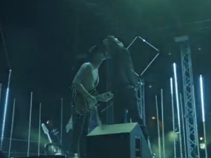 Il bacio tra Achille Lauro e Boss Doms durante uno degli ultimi concerti