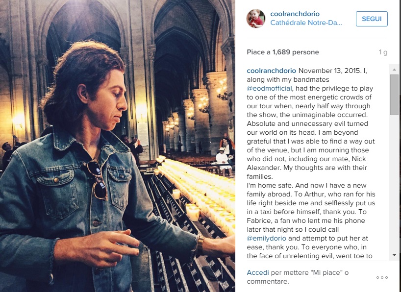 La band ha voluto chiamare il suo tour europeo “Nos amis” perché “erano tutti nostri amici” le vittime delle stragi, hanno spiegato Jesse, Dave, Matt, Julian ed Eden che hanno aggiunto: “Saliremo sul palco per onorare la vita e la musica che non si può fermare”. Il tour comincia con una tappa al club Debaser Medis di Stoccolma, poi Oslo, e martedì l’atteso ritorno proprio a Parigi, dove suoneranno all’Olympia. E per coloro che erano al Bataclan, l’ingresso è gratuito.