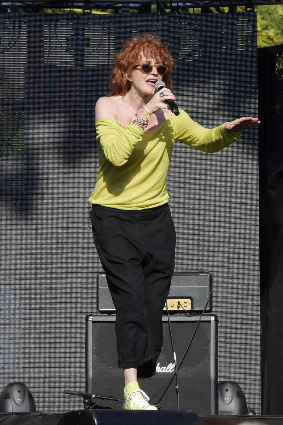 La cantante romana, rossa di capelli e di idee politiche, si è festeggiata anche con una rampogna a Beppe Grillo, del quale non ha gradito le ultime bordate contro gli immigrati.