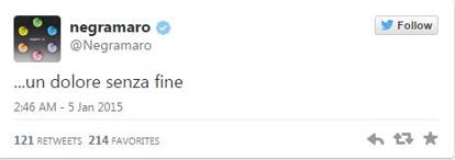 ROMA – Eros Ramazzotti รจ il primo a dare l’annuncio della morte di Pino Daniele, postando su Instagram una bella foto dell’artista sorridente. Nelle ore piccole, quando ancora mancano le conferme delle fonti ufficiali e delle agenzie di stampa, segue un tam tam sul web che racconta la notte insonne di amici, colleghi e fan increduli di fronte alla notizia della scomparsa di uno dei cantautori italiani piรน amati.