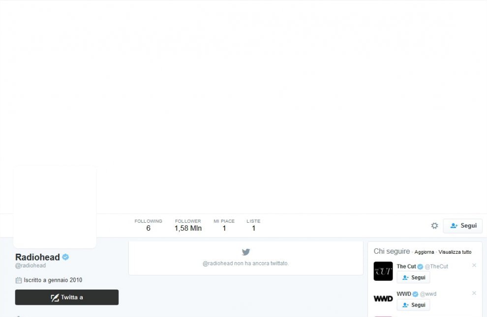 Né post, né video o tantomeno fotografie e tutto in poco tempo. Stesso discorso per il profilo ufficiale del frontman Thom Yorke e per il sito ufficiale della band, entrambi immacolati.