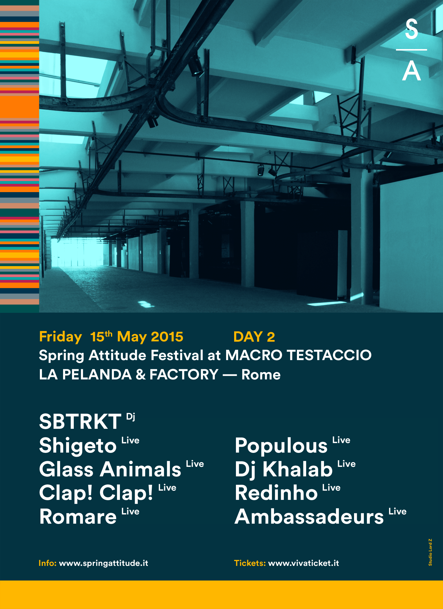 Comunicazione ai possessori del PASSPORT: l’ingresso alle location del festival sarà permesso solo presentando i biglietti di tutti e quattro i giorni di Spring Attitude e il bracciale, che vi verrà consegnato al vostro primo ingresso al festival. Vi ricordiamo che l’abbonamento è personale e non cedibile a terzi.RITIRO ACQUISTI WEB. Il ritiro dei biglietti acquistati online sara’ possibile la sera degli eventi presso i punti ritiro delle tre location di Spring Attitude 2015. Inoltre, mercoledì 13 (dalle 11.00 alle 19.00) e giovedì 14 maggio (dalle 11.00 alle 17.00) sarà attivo un punto ritiro presso la biglietteria del MAXXI in Via Guido Reni 4a.
