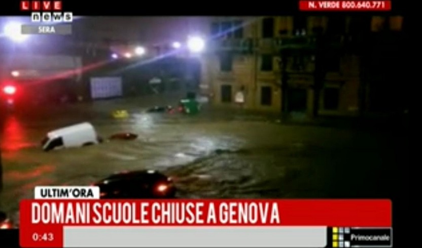 GENOVA – L’alluvione di Genova era scritta nel muro delle facili previsioni. Bastava guardare il letto del Bisagno: nessuno poteva dubitare che con una pioggia robusta il Bisagno sarebbe straripato. Ma nessuno, nel groviglio delle competenze fra Stato, Regione, Comune e sotto l’effetto morfina della distrazione generale, se ne è voluto occupare.