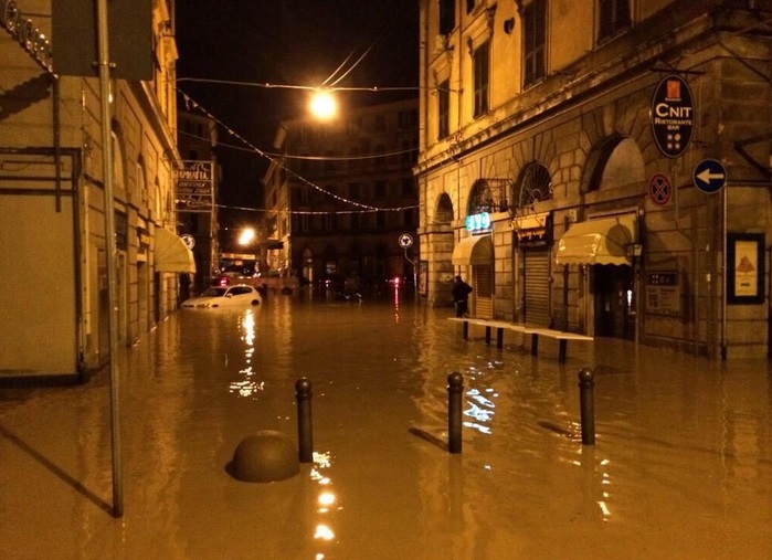 Negli ultimi anni le alluvioni sono diventate quasi abituali. Basta inserire la realtà di casa nelle chiacchiere sul mutamento del clima per capire che le cose sono cambiate. Dopo la guerra, nel 1953, ci fu una alluvione che ormai solo i più vecchi ricordano, tremenda al punto da fare saltare la copertura d’asfalto sopra l’ultimo tratto del Bisagno, dalla ferrovia al mare. Poi ce ne fu una nel 1970, che ancora la ricordano, ma solo a parole.