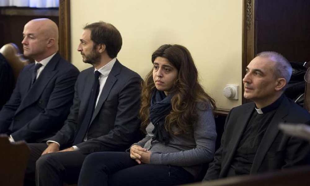 Emanuela Orlandi, 30 anni di polpette. Nella foto Ansa, Chaouqui e Fittipaldi (alla sua destra) sul banco degli imputati di Vatileaks