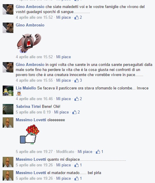 A suo tempo il poeta spagnolo Federico Garcia Lorca per l’uccisione del torero Ignacio Sanches Mejias compose come “lamento” funebre la celeberrima e bellissima poesia “Alle cinque della sera”, l’ora in cui Mejias perse la vita. Oggi invece per la morte di Del Villar si compone tutt’altro. Su Facebook per esempio c’è chi ha pensato di “comporre” non un lamento, ma un festeggiamento: