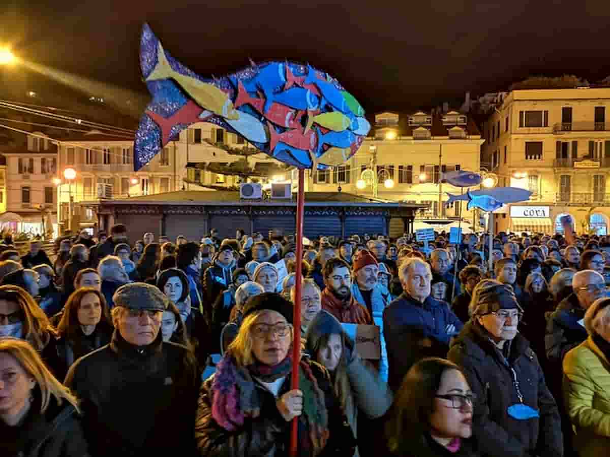 Sardine sotto vuoto, l’autentico manifesto di intenti recita: “mettere cornice (politica e di programma ndr) è mettere confine al mare”. Coerentemente l’indicazione, unica ed esaustiva: vedersi spesso, magari in piazza. Sardine sotto vuoto per non contaminarsi neanche con l’aria. La Repubblica fa della sardina asciutta l’ostia consacrata della comunione civile. Estasi mistica.