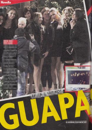 Nelle foto pubblicate dal settimanale si vede Belen mentre esce da un locale milanese dopo una lunga serata tra amiche. Con lei in versione “ballerina di Siviglia” in tacco a spillo, minidress nero e gambe in bella vista, le amiche Anna Tatangelo, Simona Miele, Claudia Galanti, Patrizia Griffini e perfino mamma Veronica.