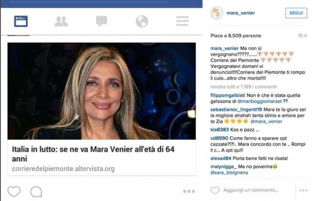 La gioia però è stata in parte offuscata: a giugno 2015 la madre della Venier, da tempo malata di Alzheimer, è morta. Mara, molto legata a lei, deve ancora elaborare il lutto: “Abbiamo trascorso il nostro anniversario in maniera semplice perché non me la sento di organizzare grandi feste. Un anno fa è morta mia madre e sento ancora questo grande dolore. Abbiamo deciso di andare tre giorni al mare e poi di tornare a Roma”.