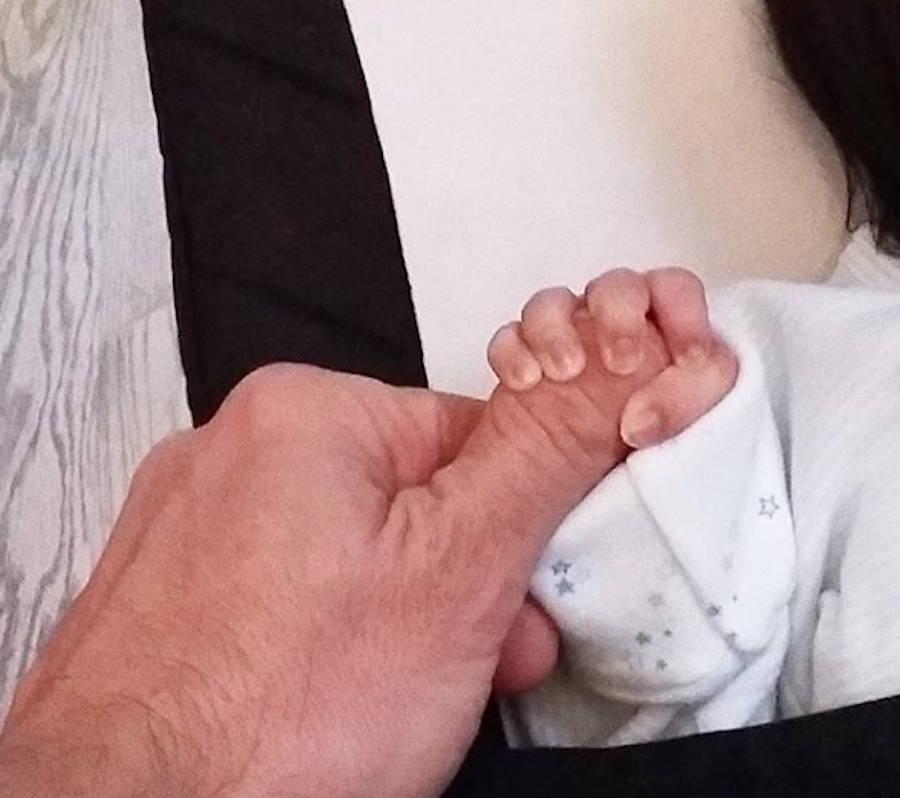 “Pollicino è arrivato”, ha scritto Mastrota per dare il lieto annuncio, suscitando l’ilarità dei suoi fan. E poi il secondo scatto, commovente, della manina che stringe il suo pollicione. “Per fortuna non ha ereditato il pollicione di papà”, ha scherzato.