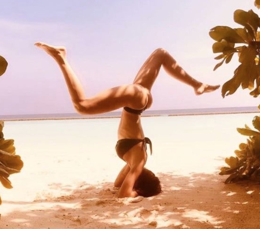 Ilary Blasi alle Maldive: le difficili posizioni yoga in spiaggia (Foto da Facebook)