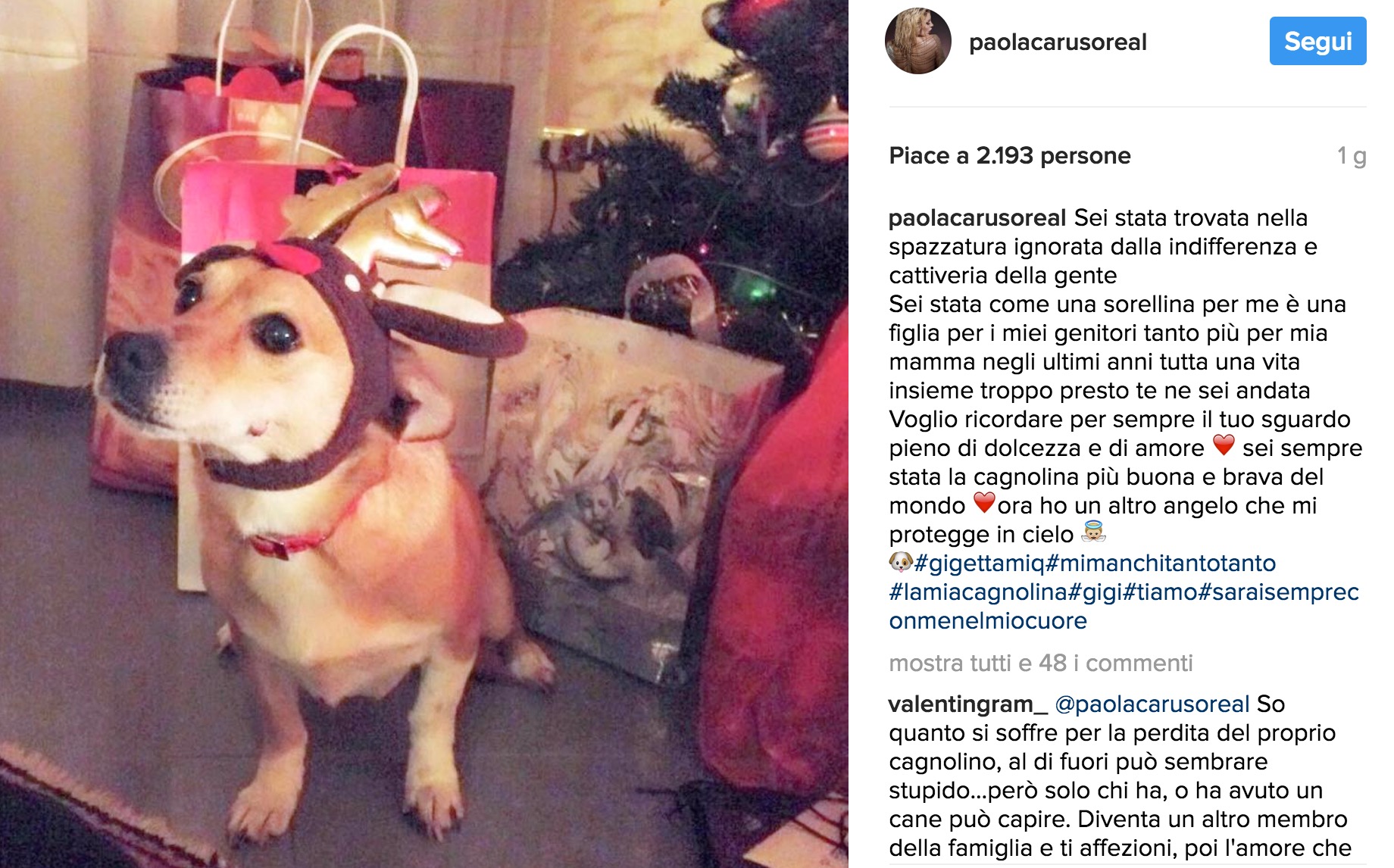 ROMA – Ancora un lutto per Paola Caruso. La ex naufraga dell’Isola dei Famosi ha annunciato ai suoi fan su Instagram la perdita della adorata cagnolina Gigi. Un lutto che arriva dopo la morte del padre e il suo ricovero per una emorragia interna. Insomma, in un periodo non proprio facile per Paola Caruso, che di recente, sempre per problemi di salute, ha dovuto anche rinunciare ad una tournée teatrale.