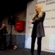 Italian singers Chiara Dello Iacovo (L) and Cecile (R) react on stage during the Sanremo Italian Song Festival, at the Ariston theater in Sanremo, Italy, 10 February 2016. The 66th Festival della Canzone Italiana runs from 09 to 13 February. ANSA/ETTORE FERRARI