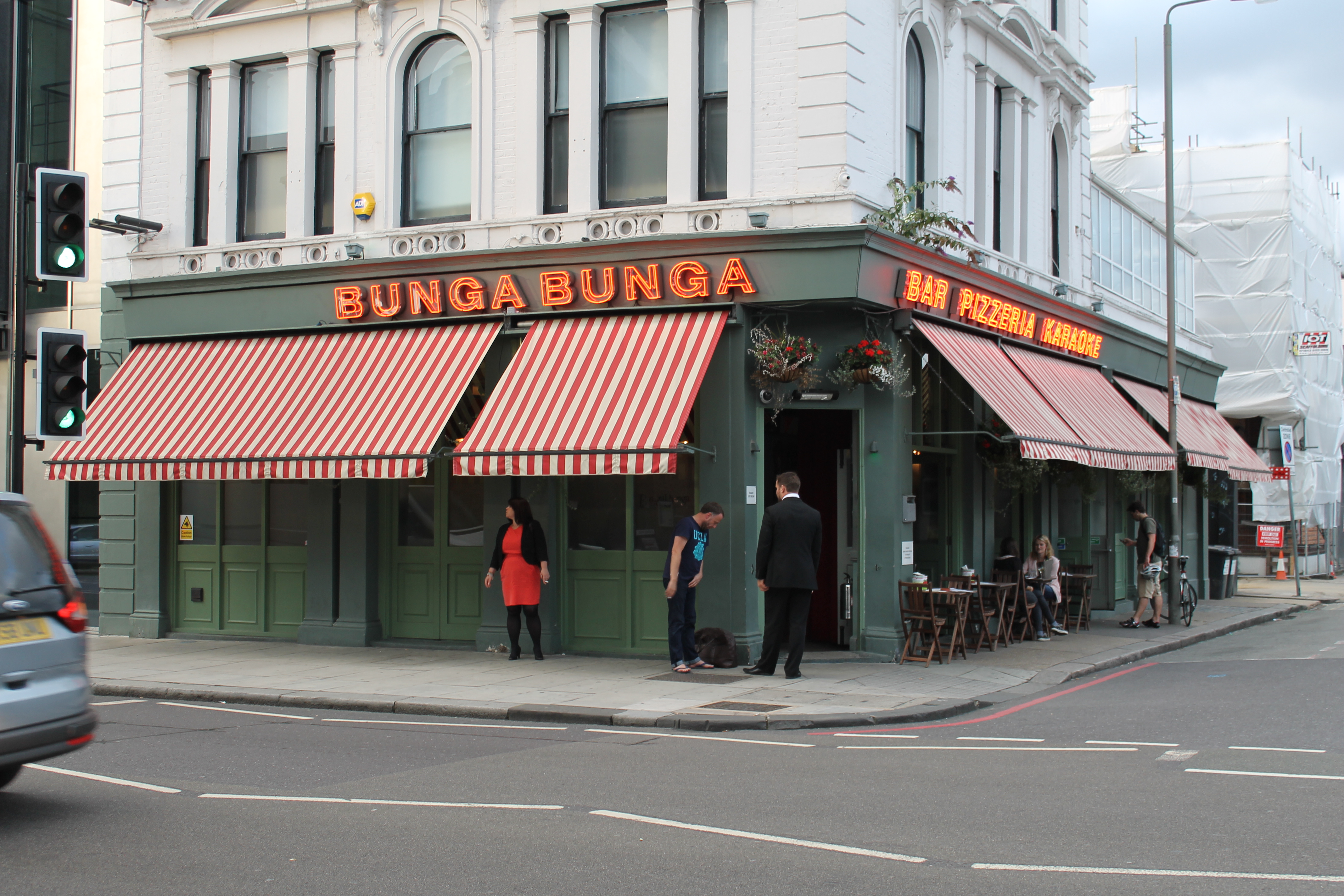 A raccontare la storia del Bunga Bunga, ospitato nel quartiere Chelsea di Londra, è Carlo Mondonico che su Novella 2000 scrive che tutti ne vanno pazzi, soprattutto per la pizza, il karaoke con i successi rigorosamente italiani e lo stile: