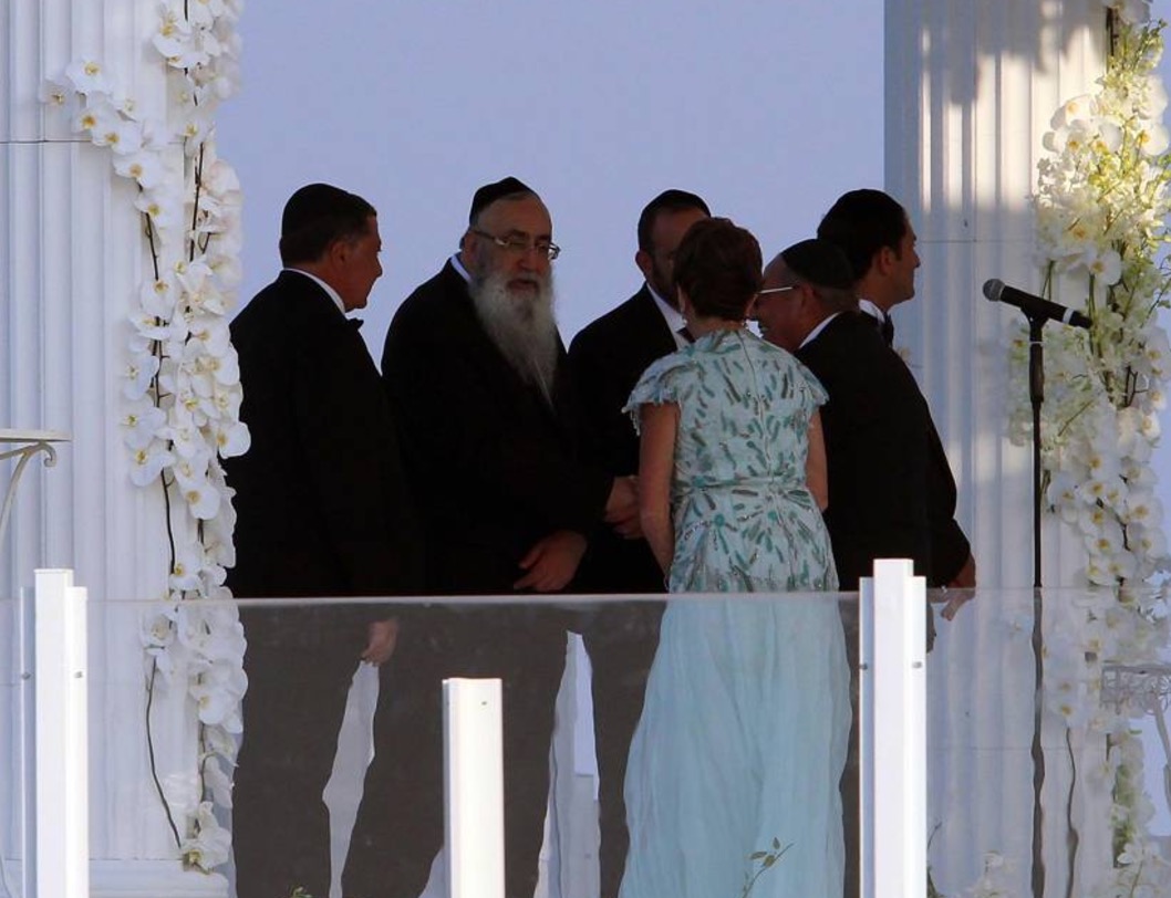 Renée Sutton, figlia di un immobiliarista di Manhattan, indossava un abito bianco con strascico e ampia apertura sulla schiena, corpetto in pizzo e una coroncina in testa. Eliot Cohen ha scelto invece uno smoking nero, con kippah sul capo. La coppia è arrivata su una carrozza trainata da cavalli bianchi.