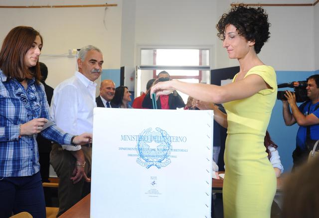PONTASSIEVE (FIRENZE) – Il presidente del Consiglio, Matteo Renzi, ha votato alla sezione numero 3 alla scuola De Amicis a Pontassieve, il comune in cui vive è cresciuto che si trova in provincia di Firenze. Accompagnato dalla moglie Agnese, vestita in un giallo solare (e secondo Dogospia senza niente sotto).