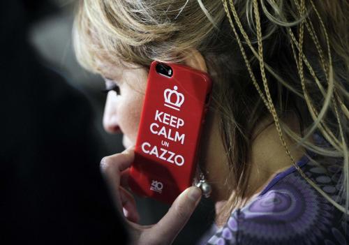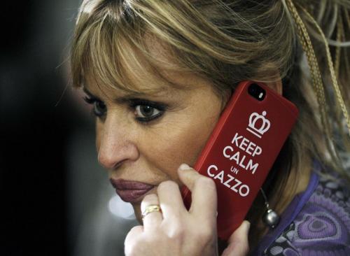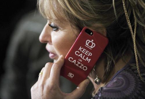 ROMA – Alessandra Mussolini usa una “sobria” cover per il suo telefonino: sul dorso c’รจ scritto “Keep calm…un cazzo”. La senatrice di Forza Italia ha esibito questa copertina durante la conferenza stampa di Silvio Berlusconi, che presentava le liste di Forza Italia per le elezioni europee. Liste in cui la stessa Mussolini รจ inclusa come candidata.