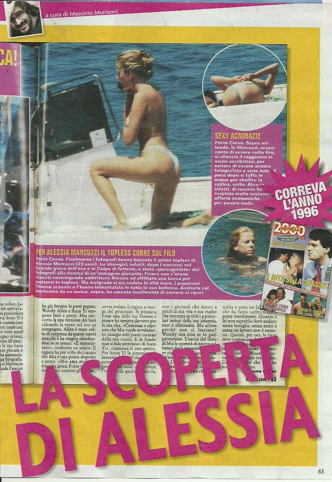 ROMA – Novella 2000 ha pubblicato una vecchia foto del 1996 dove si immortalava il primo topless di Alessia Marcuzzi, allora ventitreenne al timone di “Colpo di Fulmine”, sulle acque di Porto Cervo.