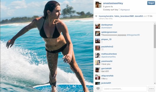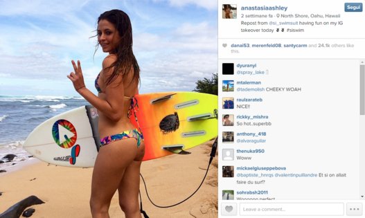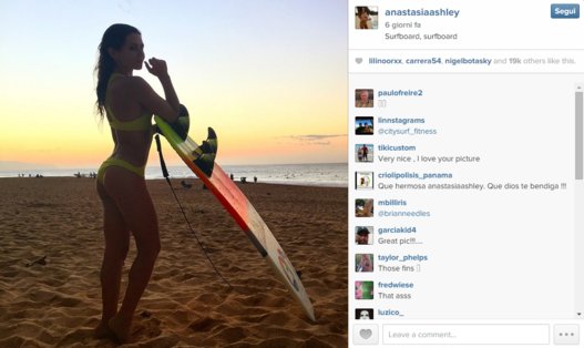 Anastasia su Twitter conta moltissimi follower. Oltre a divertirsi sulle onde dell’oceano, spesso è impegnata a fare la modella in richiestissimi servizi fotografici.