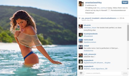 Anastasia Ashley è infatti la numero uno per fascino. Ad incoronarla è stato nientemeno che il mensile a stelle e strisce “Sports Illustrated”, che l’ha scelta per il servizio fotografico “Swimsuit”, il numero dedicato ai protagonisti dello sport mondiale in costume da bagno.