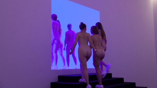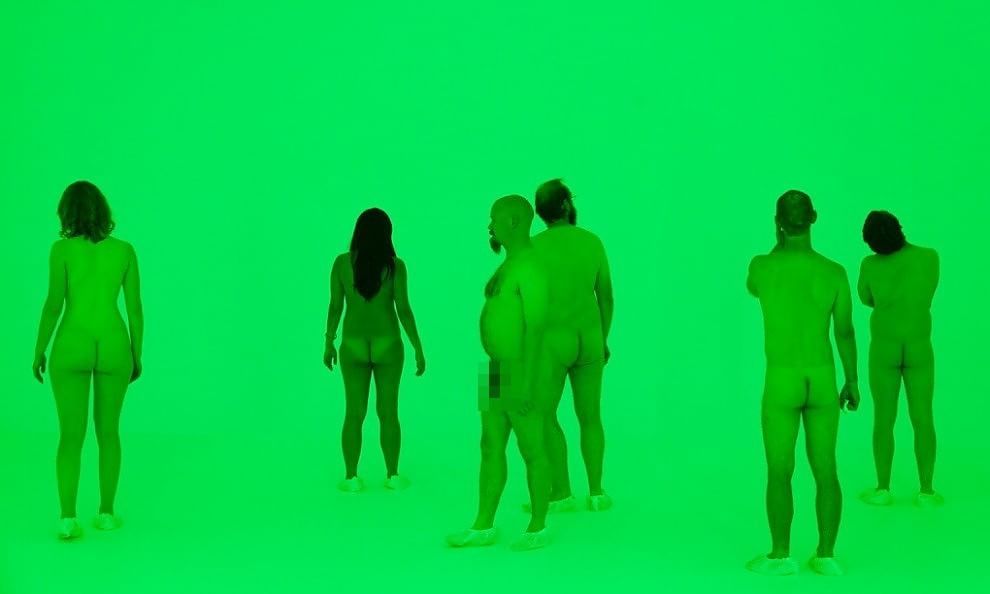 Il perché di questa scelta lo spiega l’artista di 71 anni: “Per rimuovere le barriere materiali fra artista e pubblico in alcuni dei passaggi della mostra, nello spazio di un secondo le persone si muovono attraverso quattro differenti tonalità di colore sulla pelle. I corpi, così, cambiano radicalmente aspetto, come se fossero personaggi di un film di fantascienza”. Questa esperienza unica deve essere vissuta senza vestiti. Solo così gli spettatori diventano opera d’arte a loro volta.