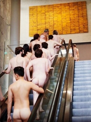 L’artista americano James Turrell ha realizzato una retrospettiva in Australia esposta alla Galleria Nazionale Australiana di Canberra che secondo Turrell deve rispettare solo una regola: nel museo si può entrare solamente nudi. I visitatori solo così possono visitare le sue “tele” di luce esposte.
