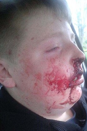 Jake ha raccontato che stava insieme ai suoi amici. Uno dei ragazzi più grandi si è avvicinato ed ha spinto giù un amico di Jake dalla bicicletta. Poi ha cominciato a prendere a pugni Jake. A scoprirlo col volto insanguinato dopo la fuga dei teppisti che lo hanno picchiato, è stata sua nonna Penny Hallybone di 65 anni che vive vicino al parco. Il ragazzino è stato portato al Medway Maritime Hospital di Gillingham da Lee, suo padre di 45 anni.