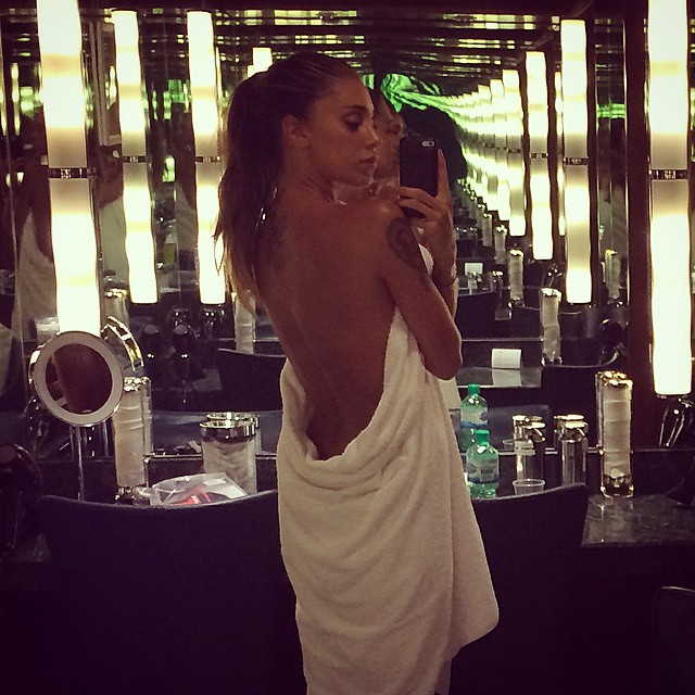 ROMA – Belen Rodriguez fa parlare di se. Schiena nuda in primo piano e un asciugamano bianco calato sul dorso. La showgirl, con i lunghi capelli raccolti in una coda, si sta specchiando e scatta la foto per la gioia dei suoi numerosi fan.