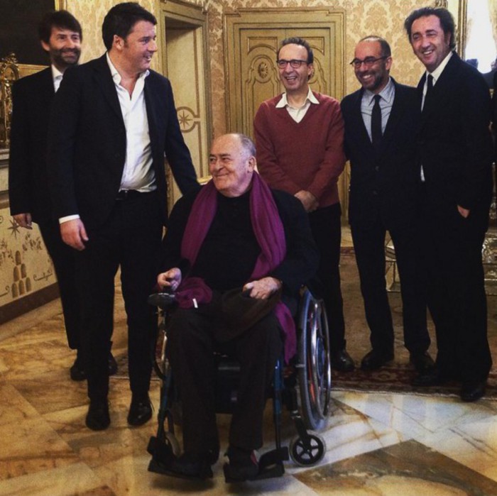 Tutti comunque concordi nel condividere la necessità di una legge strutturale. All’incontro, testimoniato da una foto ricordo che ritrae premier e ministro della Cultura, Dario Franceschini, con Benigni, Bertolucci, Sorrentino e Tornatore, hanno partecipato anche il vice segretario generale della Presidenza del Consiglio Salvo Nastasi e il portavoce di Renzi, Filippo Sensi.