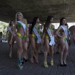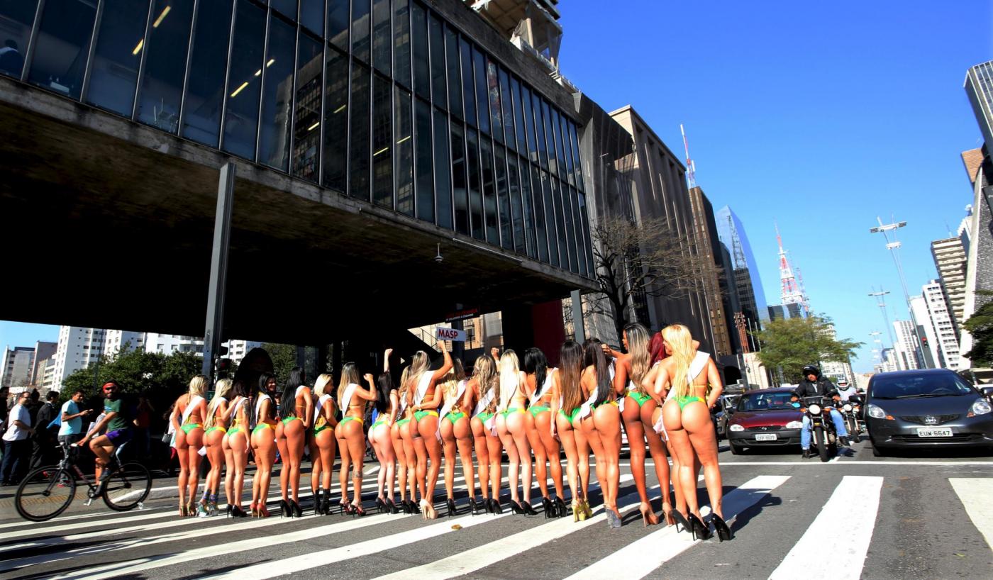 SAN PAOLO (BRASILE) – Si sono iscritte in 500 per diventare Miss Bum Bum, la ragazza con il migliore fondoschiena del Brasile, colei che si aggiudicherà la fascia e l’ambito premio che consiste in un servizio fotografico per una delle riviste maschili più importanti del paese e un riconoscimento in denaro. In questa prima fase le ragazze, una per ogni stato federale, hanno sfilato per le strade di San paolo prendendo autobus e metropolitane, mandando in tilt il traffico della megalopoli brasiliana.