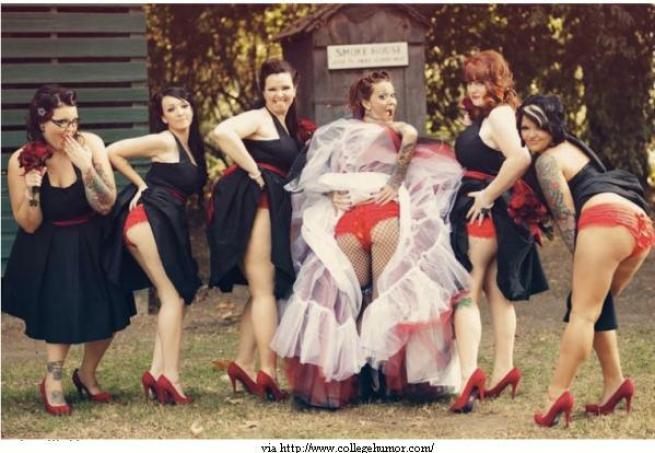 ROMA – Per immortalare il matrimonio, ossia il momento più importante della propria vita, su Twitter va ora di moda un nuovo trend: il “Bridesmaids mooning”, ossia farsi delle foto al lato B con le gonne su. A posare così è stato un gruppo di spose americane che hanno radunato tutte le damigelle per uno scatto “exposed”.