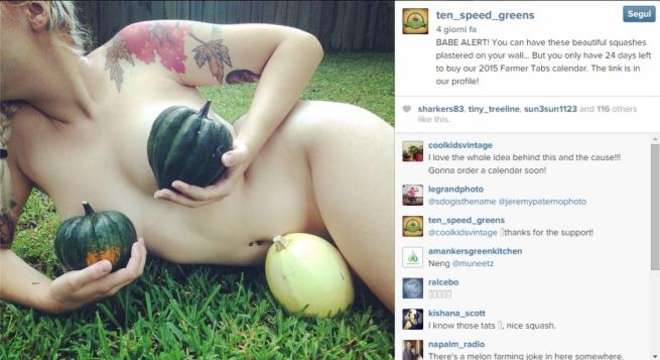 TALLAHASSEE (FLORIDA) – Le contadine della Florida posano senza veli coperte solamente dalle loro frutte e verdure, per salvare la loro fattoria.