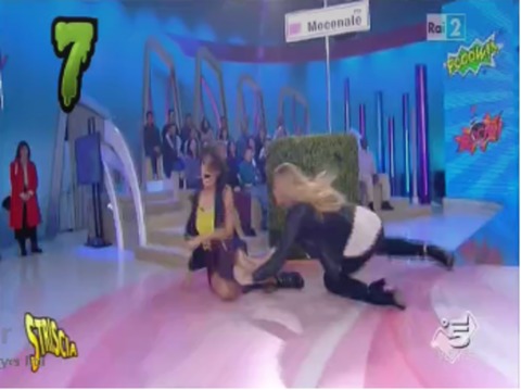 “Mai senza mutande”, perché “io la tengo, come todos” aveva replicato ironica di Caterina Balivo al video mostrato da Striscia la notizia nella rubrica “I Nuovi Mostri”. Nel filmato Caterina Balivo, durante la trasmissione “Detto fatto” su Rai Due, simulava una finta rapina in un ufficio postale. La lotta è stata più cruenta, evidentemente, di quanto fosse preventivabile e la showgirl è caduta a terra mostrando più di quanto, probabilmente, avrebbe voluto. E Michelle Hunziker, commentando il video, ha così preso in giro la collega: “Le hanno rubato tutto, anche le mutande. Vedete, le hanno dovuto mettere il bollo”.
